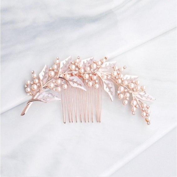 Grzebyk do włosów wykonany ręcznie z kompozycją kryształkowo - perłowąProsta, ale bardzo efektowna ozdoba do włosów.Rozmiar uniwersalny