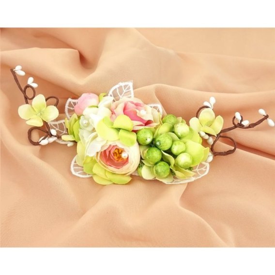 GRZEBYK ŚLUBNY BOGATE KWIATY Z KORONKĄ G70