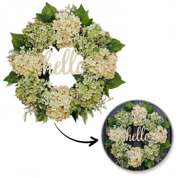 Girlanda, wianek ozdobny na drzwi, jesienny, HORTENSJE, napis HELLO WSN29