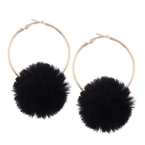 KOLCZYKI KOŁA POMPON CZARNE K632CZ