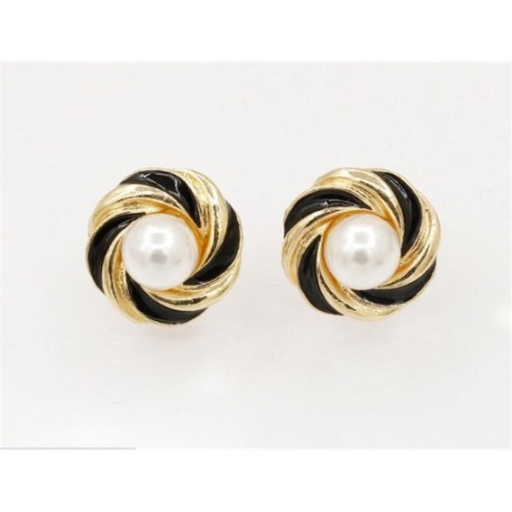 KOLCZYKI ZAWIJASY Z PEREŁKĄ ZŁOTO Z CZERNIĄ K517