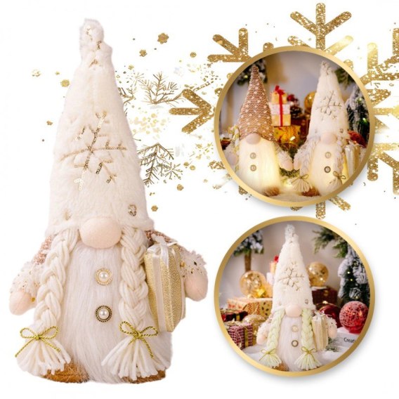 KRASNAL świąteczny świecący na baterie 30 cm Złoty Z PLUSZU KSN02Z