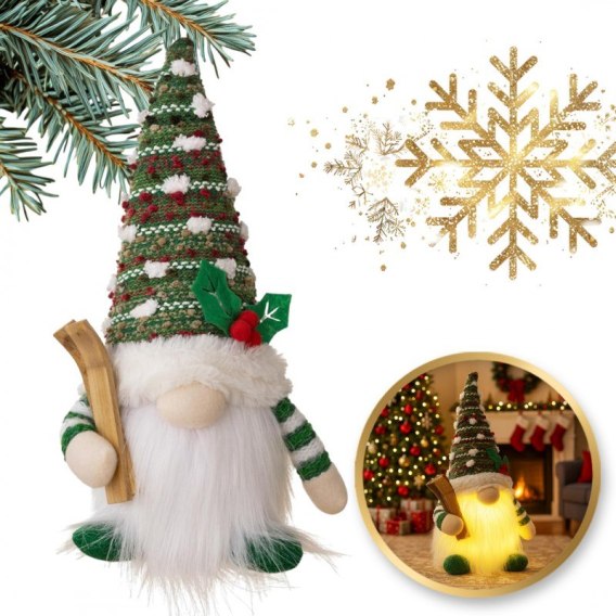 KRASNAL świąteczny świecący na baterie, lampka Z PLUSZU 14 x 28 cm, KSN208