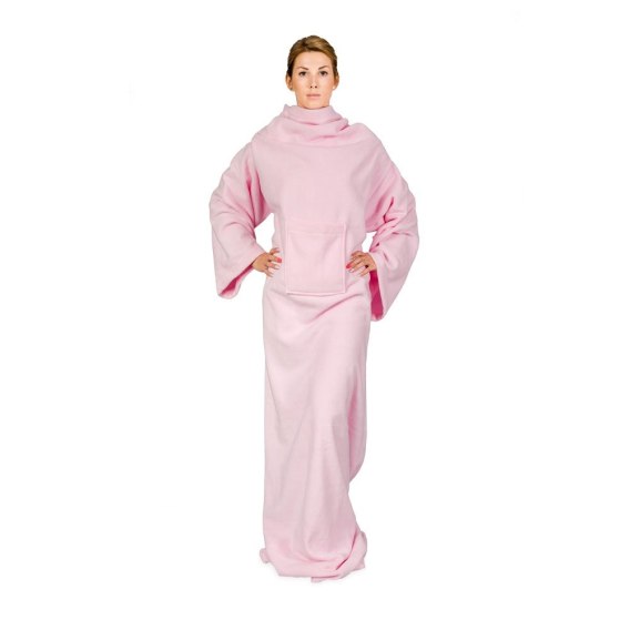 Kocyk Szlafrok Jasny Róż koc z rękawami polarowy