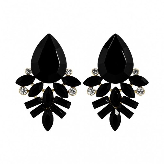 Kolczyki czarne kryształy, cyrkonie złote K321