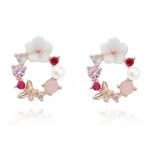 Kolczyki delikatne wianuszki kwiatki kryształki 1,2x1,4cm K1541