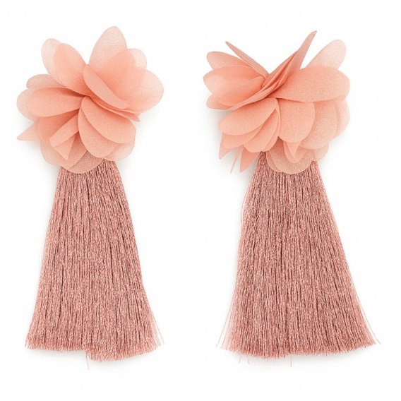 Kolczyki sztyft, tiulowy KWIAT, frędzle róż K884