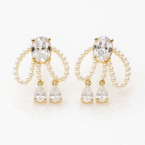 Kolczyki ze stali szlachetnej pozłacane 14k złotem, cyrkonie perły KST3474