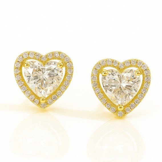 Kolczyki ze stali szlachetnej pozłacane 14k złotem, cyrkonie serca KST3483