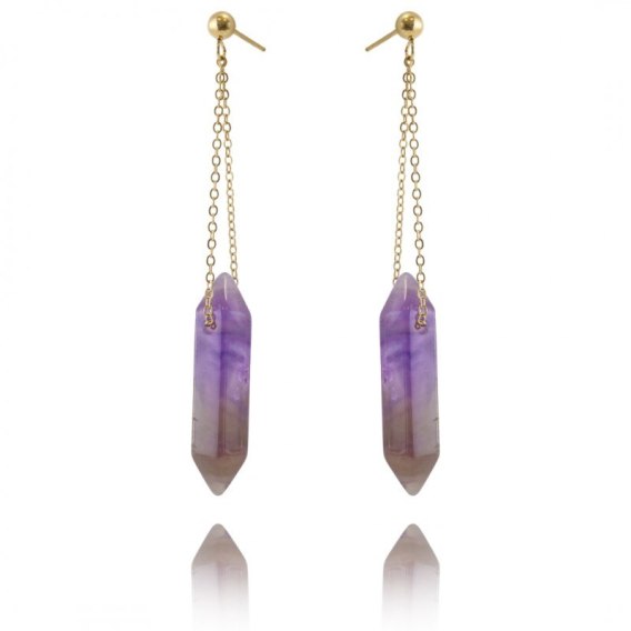 Kolczyki ze stali szlachetnej pozłacanej kryształ górski KST2911
