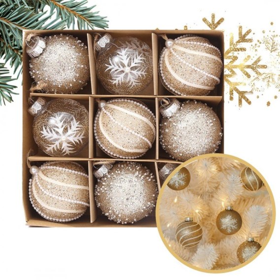 Komplet 9 sztuk bombek w opakowaniu 7cm złote, bombki na choinkę BSN18