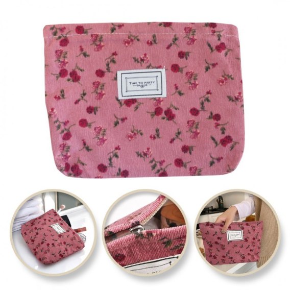 Kosmetyczka jednokomorowa różowa w czerwone kwiatuszki 25 x 5 x18 cm KS118