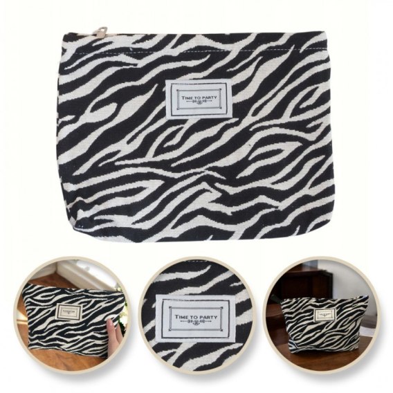Kosmetyczka jednokomorowa zeberka czarno biała 25 x 5 x18 cm KS116