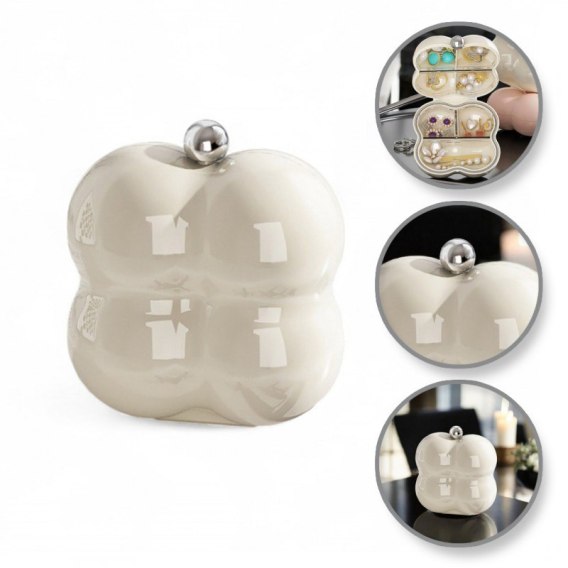 Kuferek etui organzier przenośna szkatułka na biżuterię kremowa PD156K