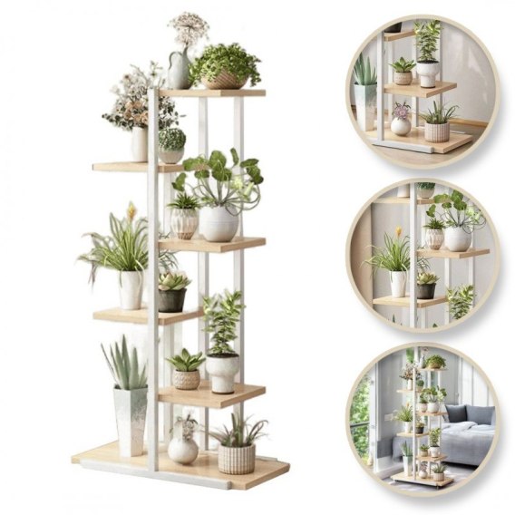 Kwietnik, regał, stojak na kwiaty 113x60x20cm biało- brązowy SZ16B