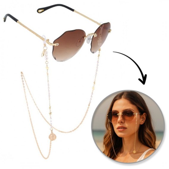 Łańcuszek do okularów perełki i gwiazdki LDK06