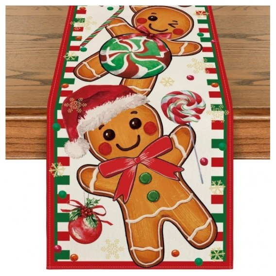 Lniany bieżnik na stół bożonarodzeniowy, PIERNICZKI 180 x 33cm BZK09