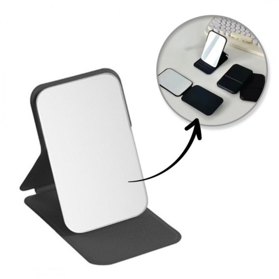 Lusterko kosmetyczne z ekoskóry, otwierane, stojące, do torebki czarne L17CZ