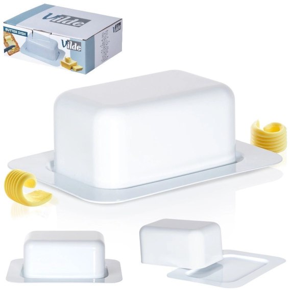 Przydatna maselniczka, która sprawdzi się do przechowywania oraz serwowania masła. Posiada praktyczne przykrycie. Wykonana z materiałów bezpiecznych dla zdrowia i neutralnych dla żywności. Klasyczny wzór sprawi, że będzie pięknie prezentować się z każdą zastawą stołową. Przydatna w każdym domu.