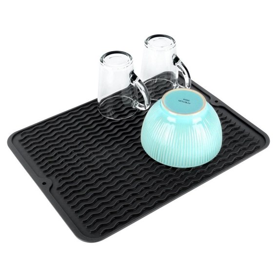 <li><strong>Rowki odprowadzające wodę</strong> - Mata do suszenia naczyń posiada odpowiednio wyprofilowane rowki, które zapewnią spływ wody w jednym kierunku. Idealna do suszenia delikatnych kieliszków, mata zapewni im stabilność podczas suszenia.</li>