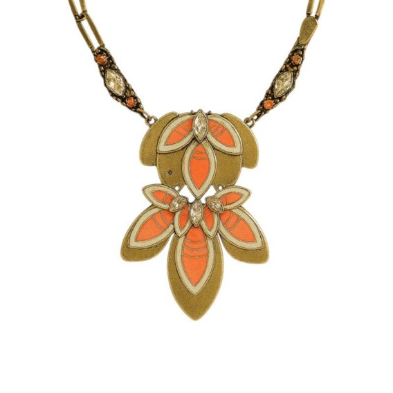 NASZYJNIK KOLIA BOHO KWIATY ZŁOTO POMARAŃCZ N443