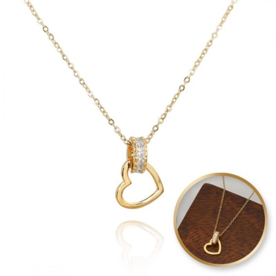 Naszyjnik SERCE stal szlachetna pozłacana 14k złotem, z cyrkoniami NST2112