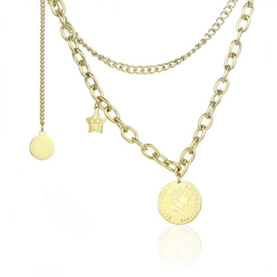 Naszyjnik stal chirurgiczna złoty podwójny z ozdobną zawieszką NST1053