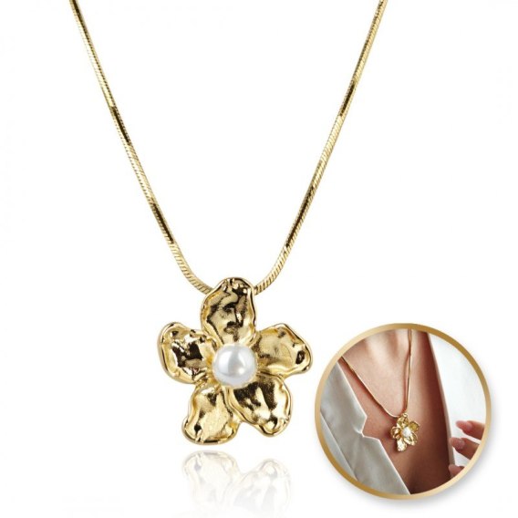 Naszyjnik stal szlachetna pozłacana 14k złotem KWIAT PERŁA NST2183