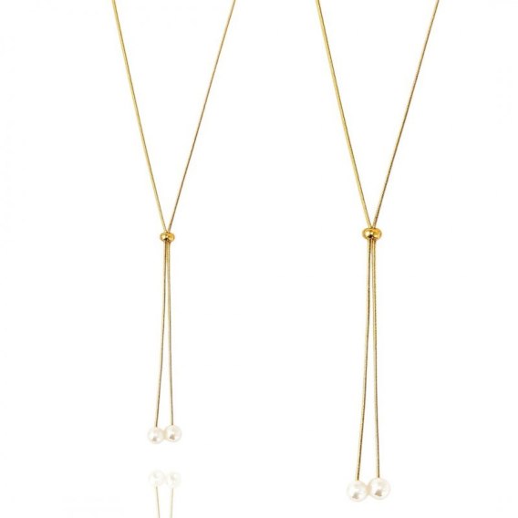 Naszyjnik stal szlachetna pozłacana 14k złotem, długi, regulowany perły NST2209