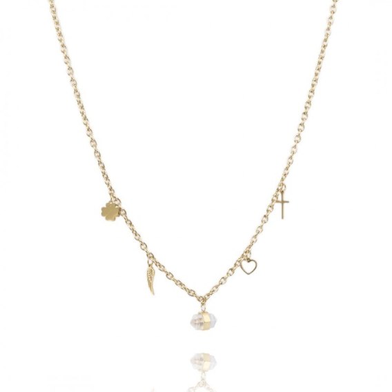 Naszyjnik stal szlachetna pozłacana 14k złotem kryształ górski NST1585