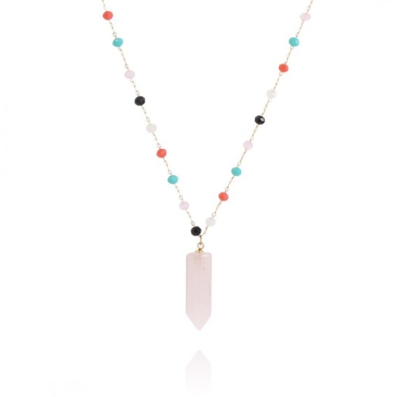Naszyjnik stal szlachetna pozłacana 14k złotem kryształ górski NST1604