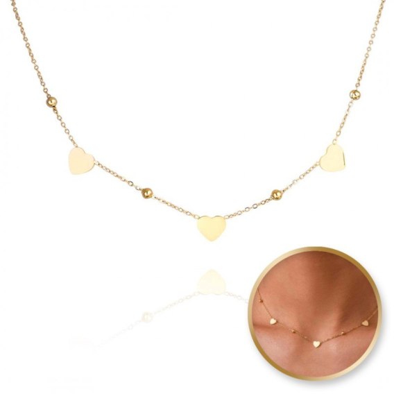 Naszyjnik stal szlachetna pozłacana 14k złotem, serca, kulki NST2033