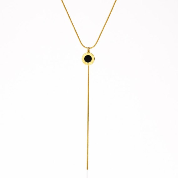 Naszyjnik wpadający stal szlachetna pozłacana 14k złotem, czarna tarcza zegara NST2224