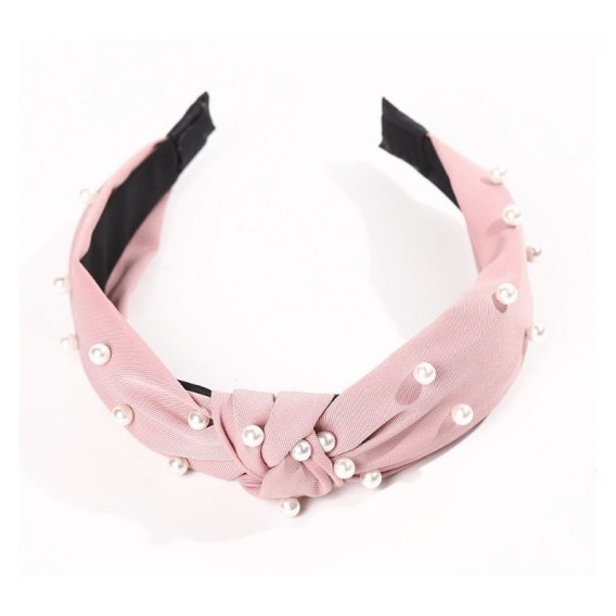 Opaska turban z materiału gruba pudrowa perełki O227R