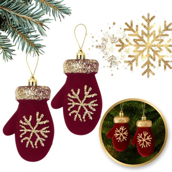 Ozdoba świąteczna bordowe rękawiczki welurowe 2szt WOZ60