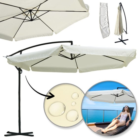 Parasol ogrodowy z wysięgnikiem i falbanką, kremowy 3,5 m. OGP10