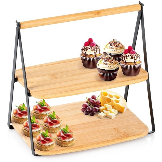 Patera Bambusowa 2-piętrowa 28 x 20 x 27,5 cm VILDE do Serów Przekąsek