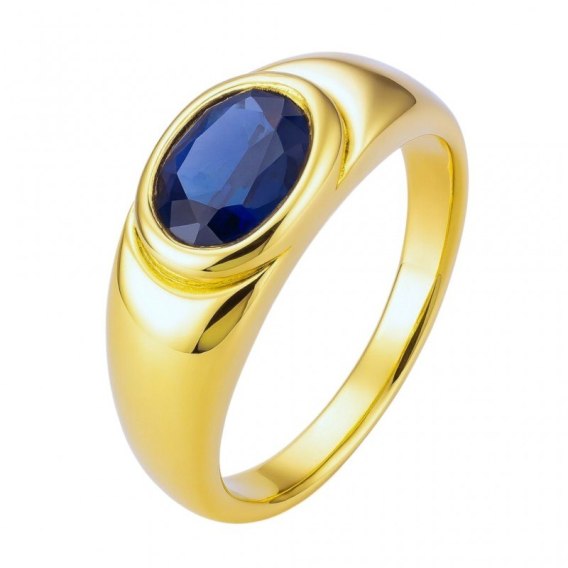 Pierścionek pozłacany stal chirurgiczna platerowana złotem, niebieski kamien PST855, Rozmiar pierścionków: US7 EU14