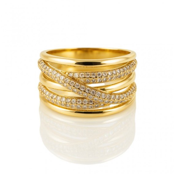 Pierścionek stal chirurgiczna platerowana złotem, z cyrkoniami PST973, Rozmiar pierścionków: US6 EU11