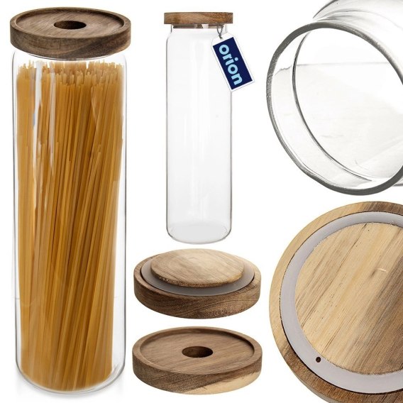 Wysoki pojemnik do przechowywania żywności z drewnianą pokrywą posiadającą uszczelkę. Nadaje się do przechowywania różnych produktów spożywczych. Znajdzie wiele zastosowań w kuchni. Dzięki szczelnej zakrętce z silikonową uszczelką przechowywane produkty utrzymają dłużej świeżość. Przezroczyste szkło pozwoli nam w łatwy sposób sprawdzić zawartość pojemnika i w efektowny sposób wyeksponować ją. Przechowywanie produktów w pojemniku pozwoli na uporządkowanie przestrzeni kuchennej.