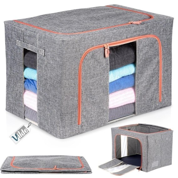 ⭐ Transparentne okienka i metalowy stelaż - Pokrowiec posiada przezroczyste okienka, umożliwiające szybki podgląd zawartości bez konieczności otwierania, co ułatwia organizację i przechowywanie. Wnętrze pokrowca posiada metalowe stelaże, które nadają mu stabilny kształt, zapobiegając zapadaniu się i ułatwiając przechowywanie ubrań oraz pościeli w estetyczny i uporządkowany sposób. Możliwość złożenia na płasko.