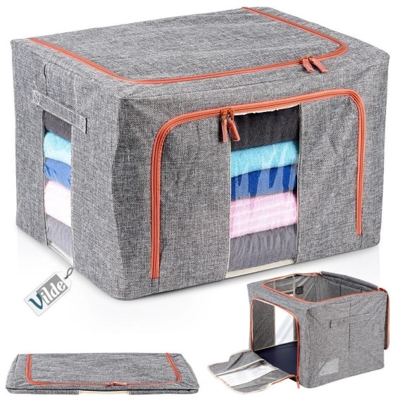 ⭐ Transparentne okienka i metalowy stelaż - Pokrowiec posiada przezroczyste okienka, umożliwiające szybki podgląd zawartości bez konieczności otwierania, co ułatwia organizację i przechowywanie. Wnętrze pokrowca posiada metalowe stelaże, które nadają mu stabilny kształt, zapobiegając zapadaniu się i ułatwiając przechowywanie ubrań oraz pościeli w estetyczny i uporządkowany sposób. Możliwość złożenia na płasko.