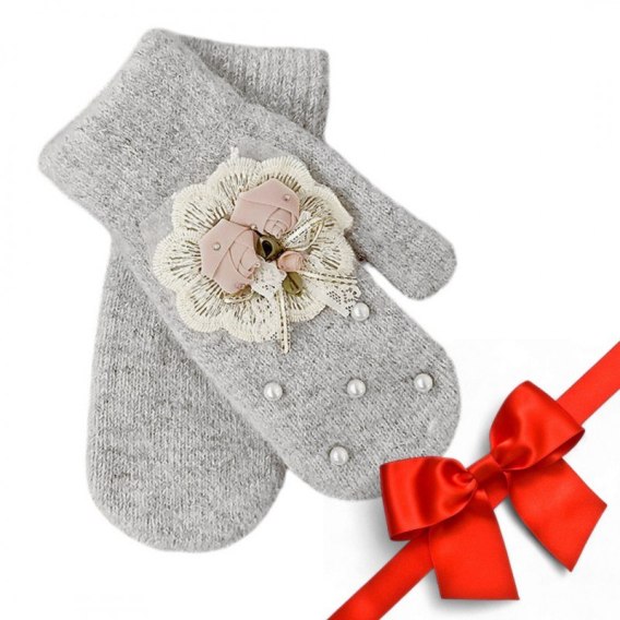 RĘKAWICZKI jednopalczaste CUTE KWIATY I PEREŁKI SZARE REK131