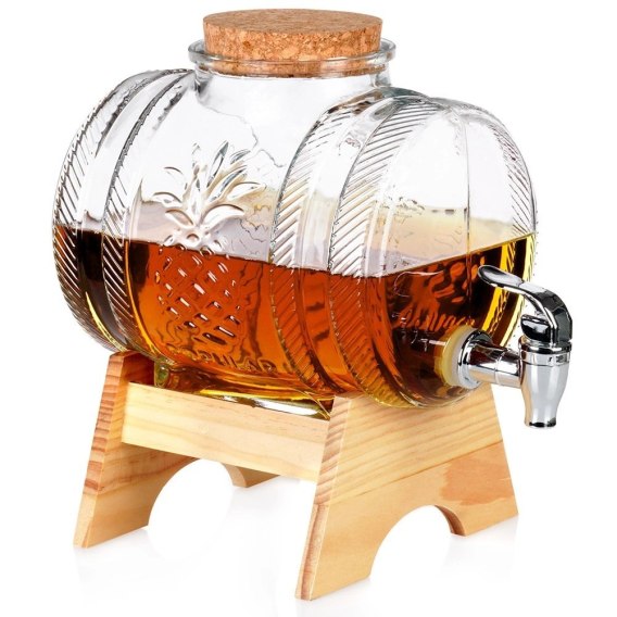 Dystrybutor do napojów z kranikiem o pojemności 3 l w zestawie ze stojakiem. Idealny do serwowania lemoniady w gorące dni, ponczu lub soku podczas imprezy, a także whisky. Słój ma efektowny kształt beczki o wymiarach 25 x 14 x 19,5 cm. Słój umieszczony na stojaku ma wymiary 25 x 17 x 25 cm.