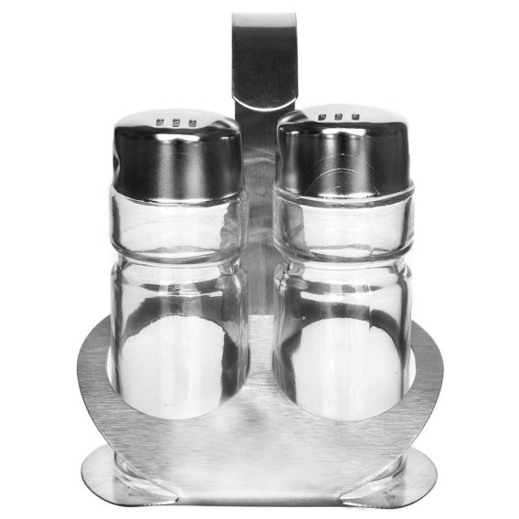 Solniczka Pieprzniczka Pojemnik na Sól Pieprz ze Stojakiem ORION 3 el.