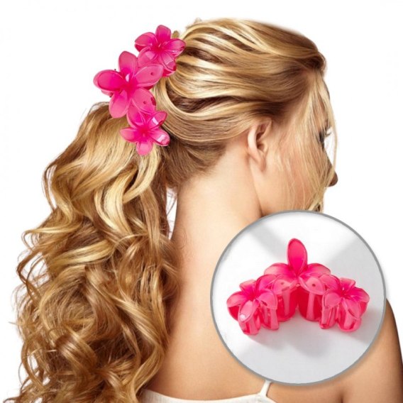Spinka do włosów klamra duża XL kwiat potrójny różowy 7 x 11cm SP386