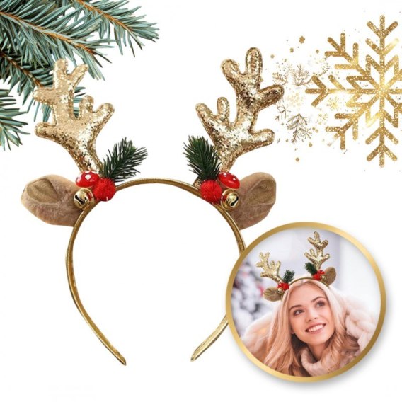 Świąteczna opaska do włosów z uszkami i rogami Renifer O538Z