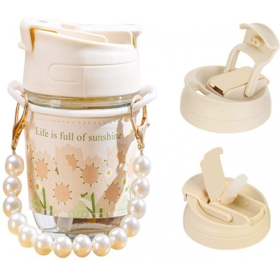Szklany perłowy kubek bidon z uchwytem Sunshine 350 ML SZK81