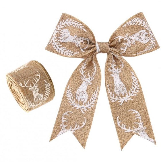 Taśma świąteczna na kokardę, wstążka na prezent Bożonarodzeniowa Beżowa 5cm x 2m KSN128