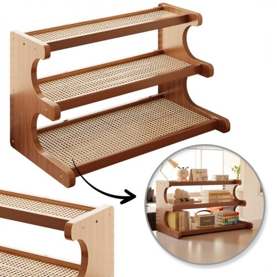 Wielofunkcyjny 3-poziomowy regał bambusowy, półka na biurko 19x50x31 cm SZ49